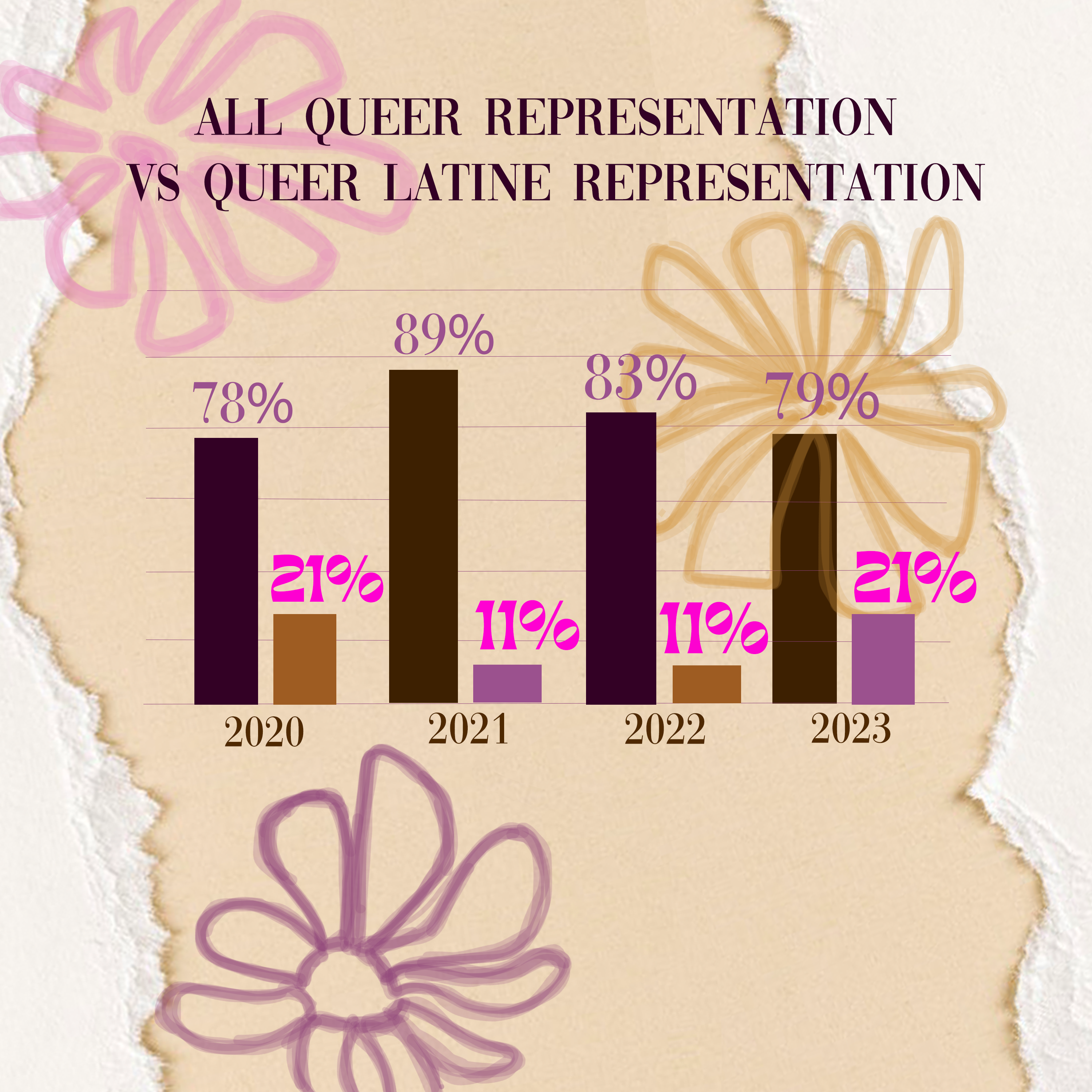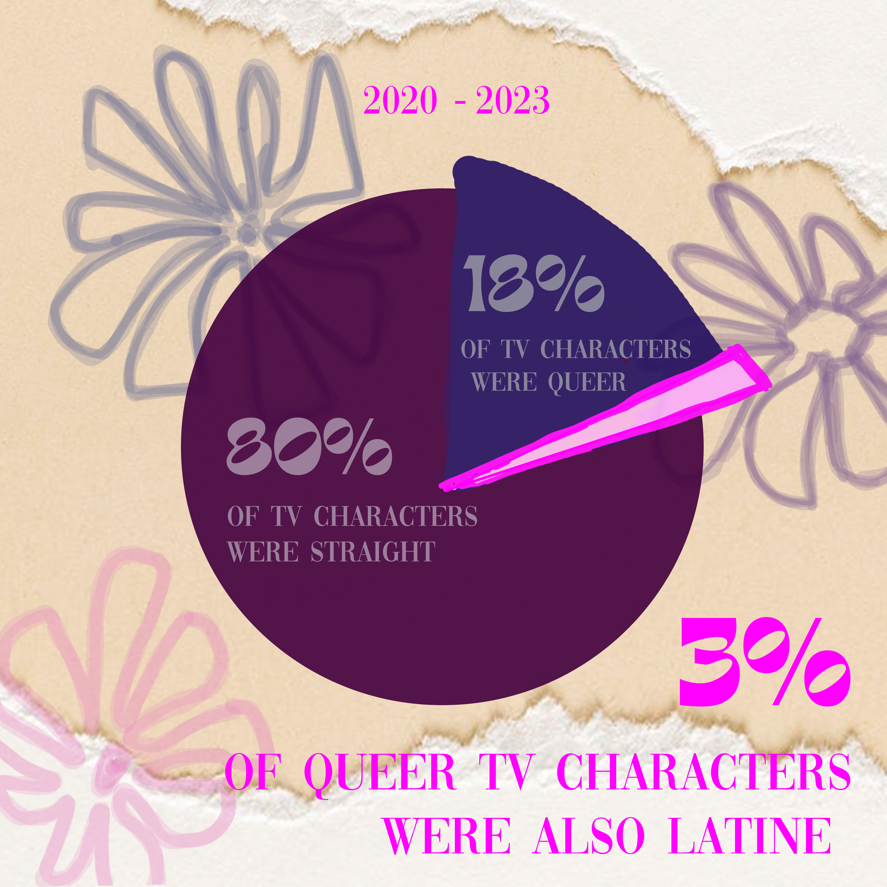 However, only 3% of TV characters shared the intersection of being queer and Latine from 2020 to 2023.
