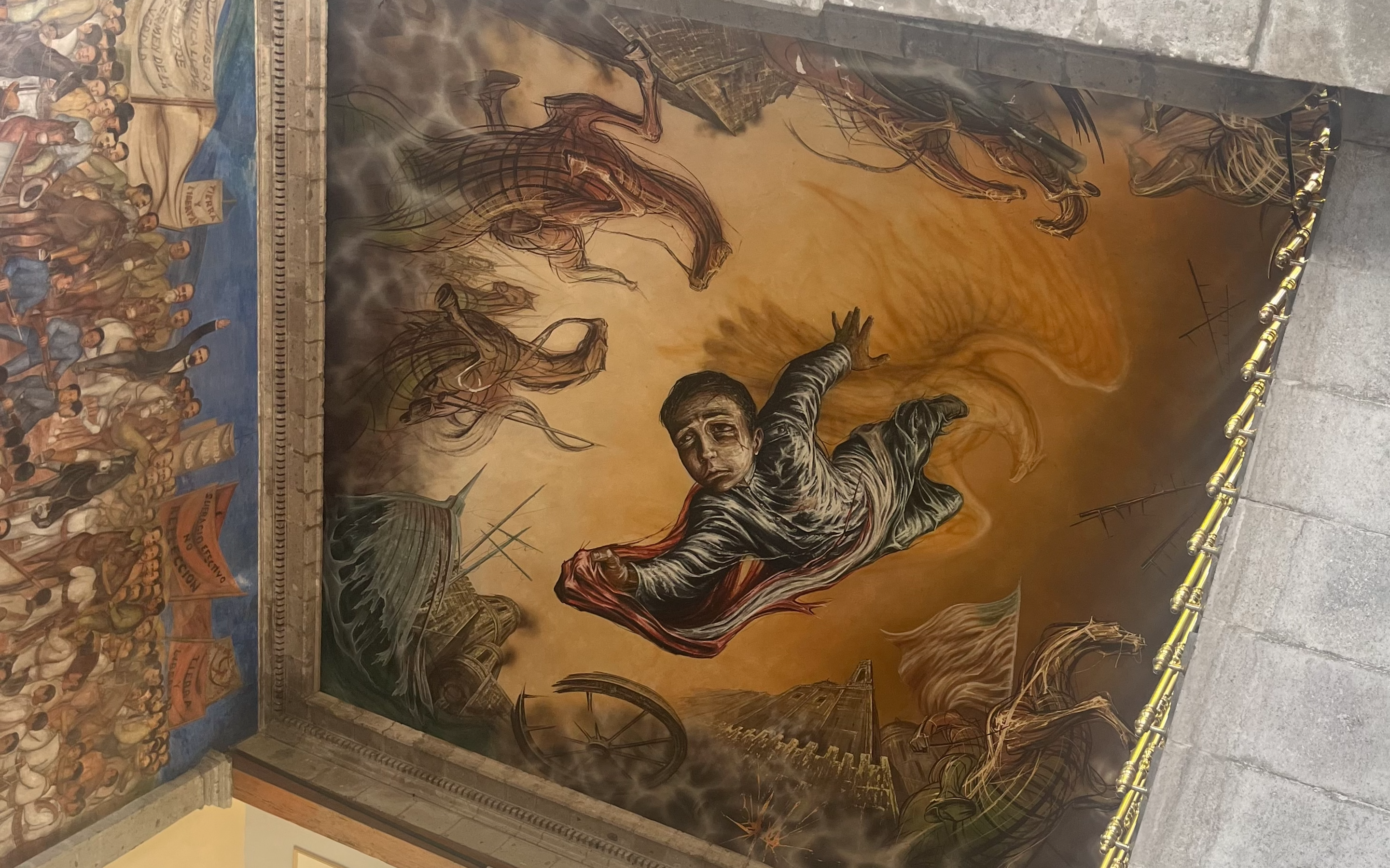 Gabriel Flores painting of Juan Escutia could be found in the ceiling of el Castillo de Chapultepec in La Cuidad de Mexico. Escutia jumped from the castle to his death wrapped in the Mexican flag to prevent it from falling into U.S. hands, protecting his idenitiy. We must also protect our Queer Latinidad.