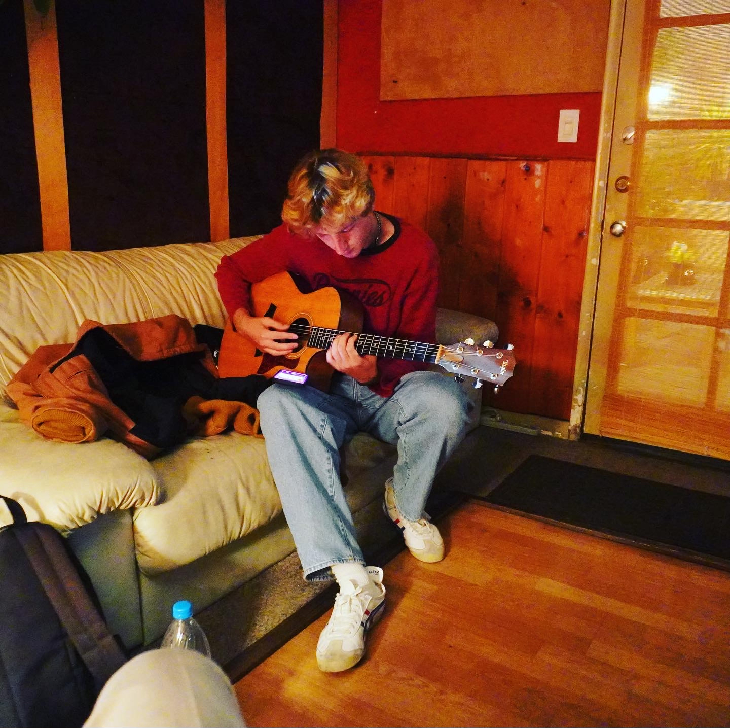 His brother, Jason, is asleep on the couch, as if he owns the place. This might not be his house, he lives in an apartment with his girlfriend in Pomona, but he likes spending time here. It’s the musical home of their friend group – a group of academics, studying topics such as business and accounting by day, turned musicians by night.