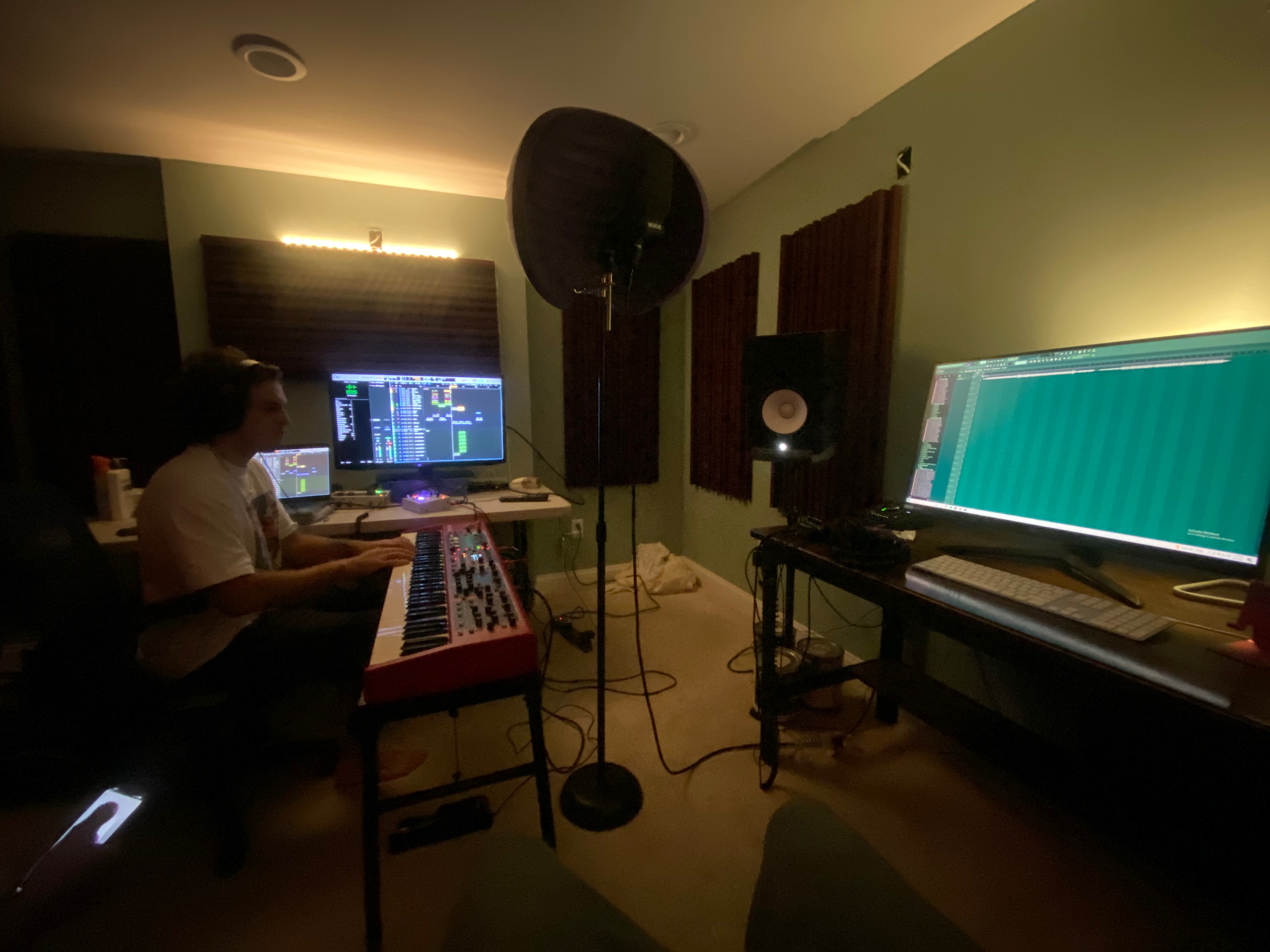 Back at his house, equal time is given to listening to music as it is to creating it. Even while playing a game on Jacob’s Nintendo Switch or watching a football game on TV, something is always playing in the background.