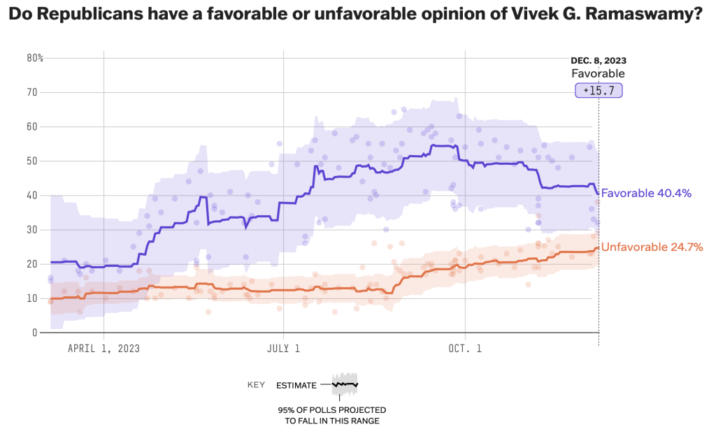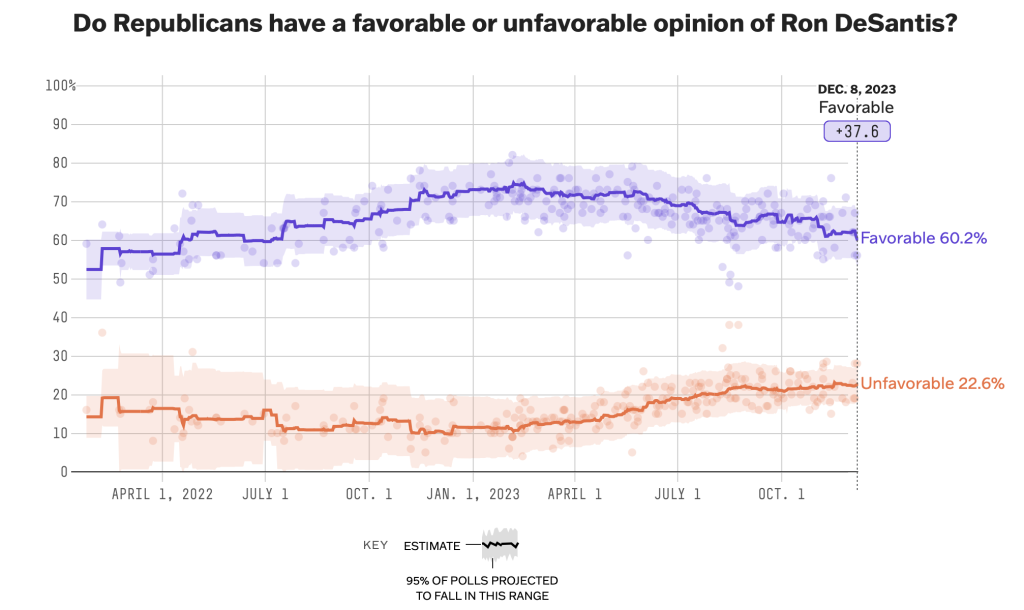 Like Trump, though, Ramaswamy and DeSantis are also significantly more popular within the GOP than at a national level.