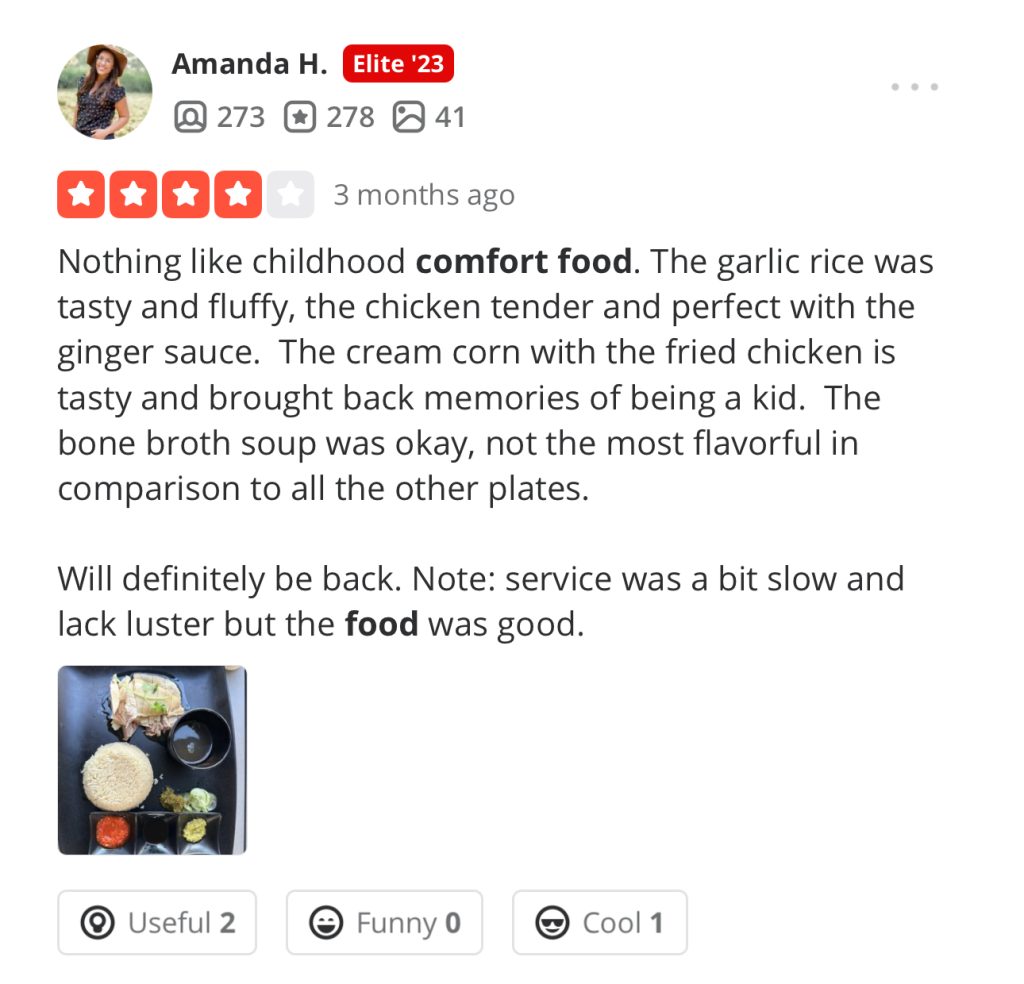 Comfort food reviews for Los Angeles restaurants serving HCR. (Photo courtesy of Yelp)