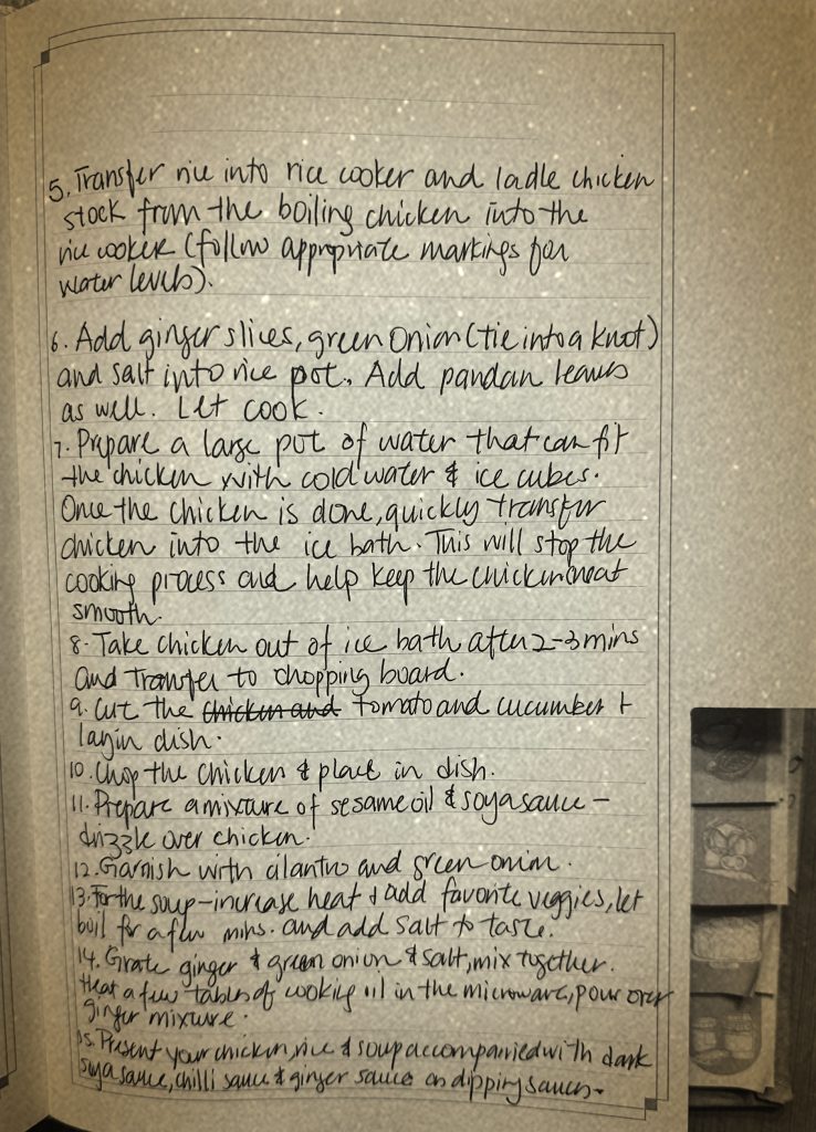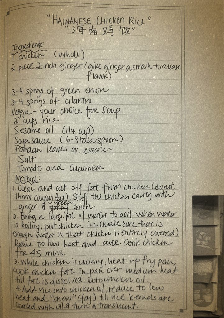 I remember in the cozy, fragrant confines of my grandmother’s kitchen, the preparation of Hainanese Chicken Rice was not merely a culinary endeavor, but a meticulous, loving ritual. She would gently poach the chicken, its flesh soaking up the warmth of the boiling water, and then, it’s caressed by the coolness of room-temperature water, a pause, a gentle respite, before being allowed to drip dry, its flavors quietly intensifying beneath a protective towel. But here, in this seemingly straightforward process, her Cantonese influence subtly makes its presence known. The chicken, post-poaching, is introduced to iced water. I recall asking my grandmother, “Ah Mah (Grandma), why are you bathing the chicken?” Looking at me, she would grin and say that this is the secret to a soft, smooth and tender chicken. And it was in these moments, these culinary rituals, that my grandmother transformed her kitchen into a workshop of sorts, where my mother and her two younger sisters would gather, absorbing not just the techniques but also the silent, affectionate narratives embedded within each step, each ingredient, becoming the next bearers of a culinary tradition, a timeless, flavorful legacy.
