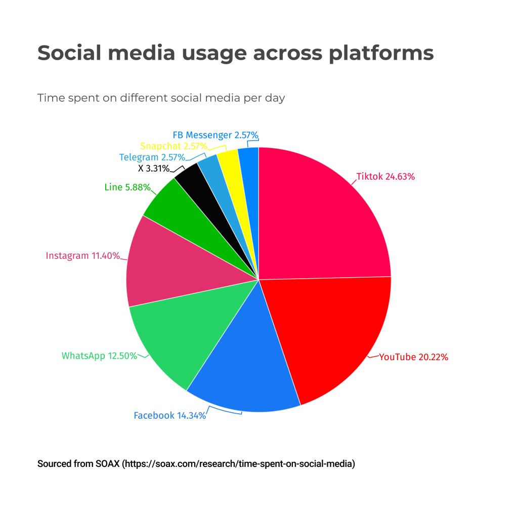Sam Koog — uses social media about 2 hours per day. Koog primarily engages with Instagram and YouTube.