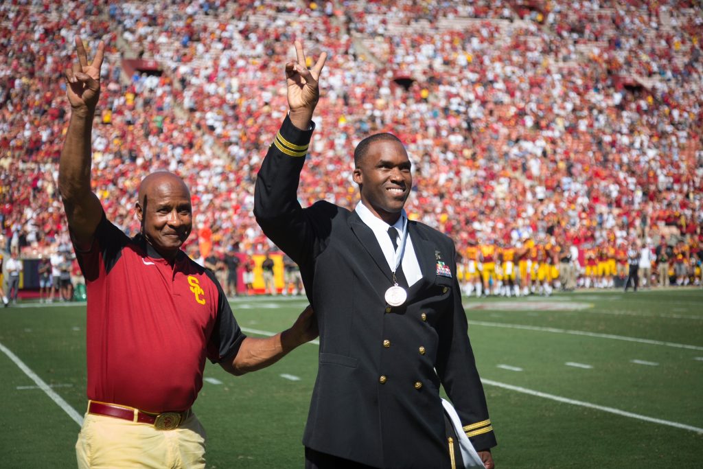 Now in his 50s, Greene is a retired veteran, father of four, and a proud Trojan who embodies high performance and unwavering commitment to helping others overcome obstacles in life.