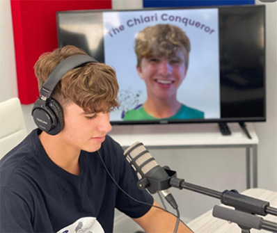 Forman records an episode for his podcast, The Chiari Champion. (Photo courtesy/Noah Forman)