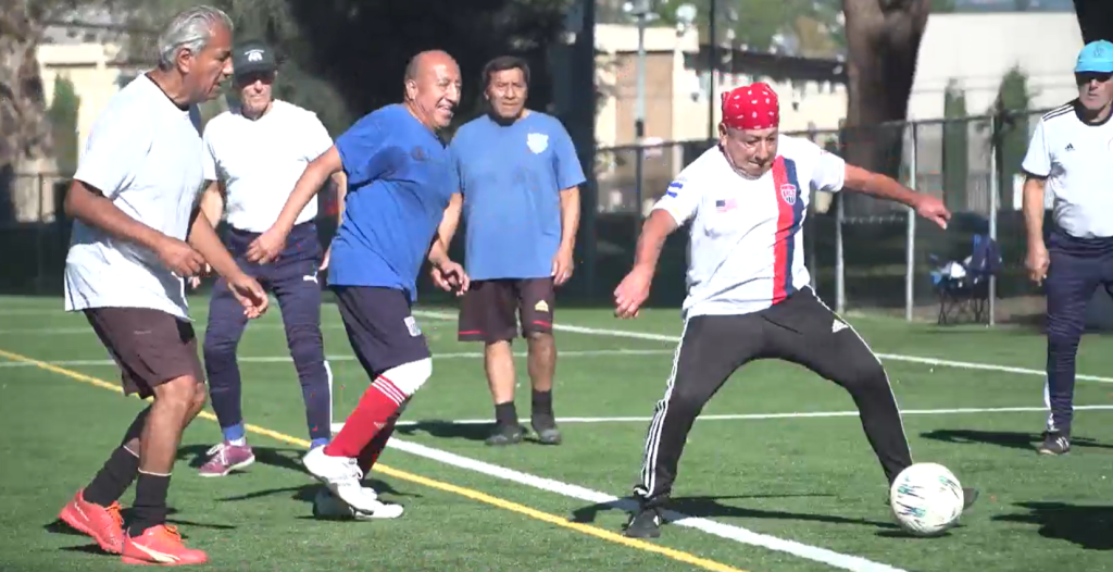 At Lanark Park in Los Angeles County, a walking soccer league for men over 65 is helping to address this exact problem. Known as walking soccer, the modified version of soccer focuses on teamwork and movement rather than speed or technique. These games are played on half fields and goal posts at the height of your chest. On Wednesdays and Fridays, the park fills with conversation, laughter, and a social hub rather than just a playing field.