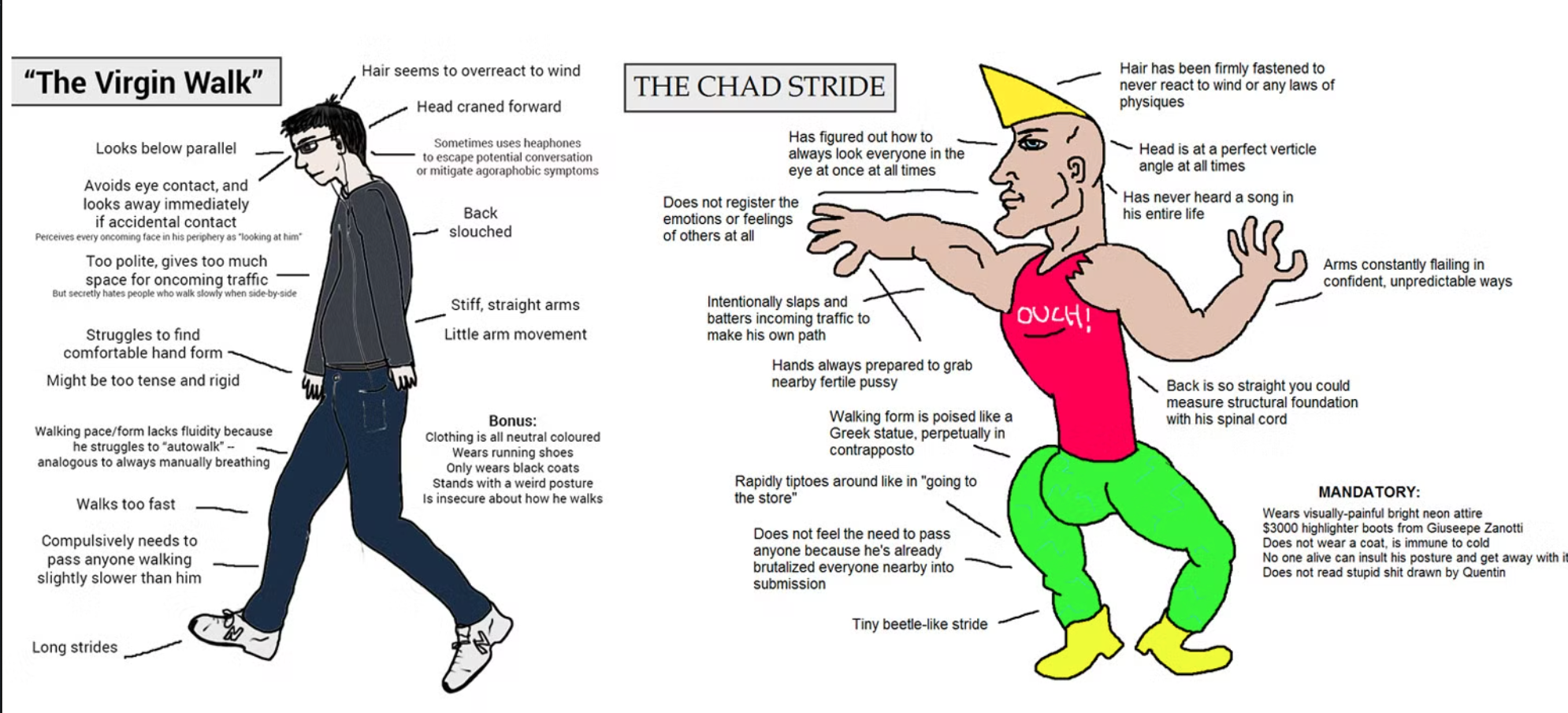 Incels believe in biological determinism and the 20/80 rule, which states that only 20% of men are desired by 80% of women. Men who do not fit the description of a "Chad"– good looking, muscular, tall, and wealthy– are doomed to loneliness, as women will always choose dominant men for protection and validation. The Incel community blames Chads for monopolizing sexual relations with women, leaving other men without a partner.