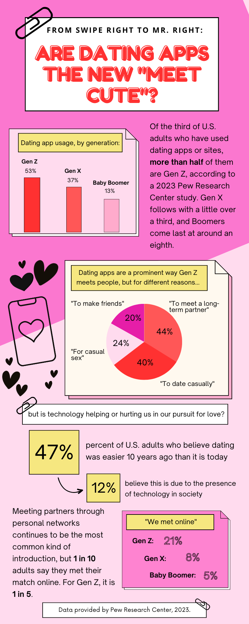 “Right now there’s research that compares this to e-commerce and sites like Amazon–it kinda feels like the same experience sometimes when you're flipping through profiles on a dating app,” she said. “You forget that these are real people putting themselves out there and you fall into that mindset of swiping because the pool seems endless.”