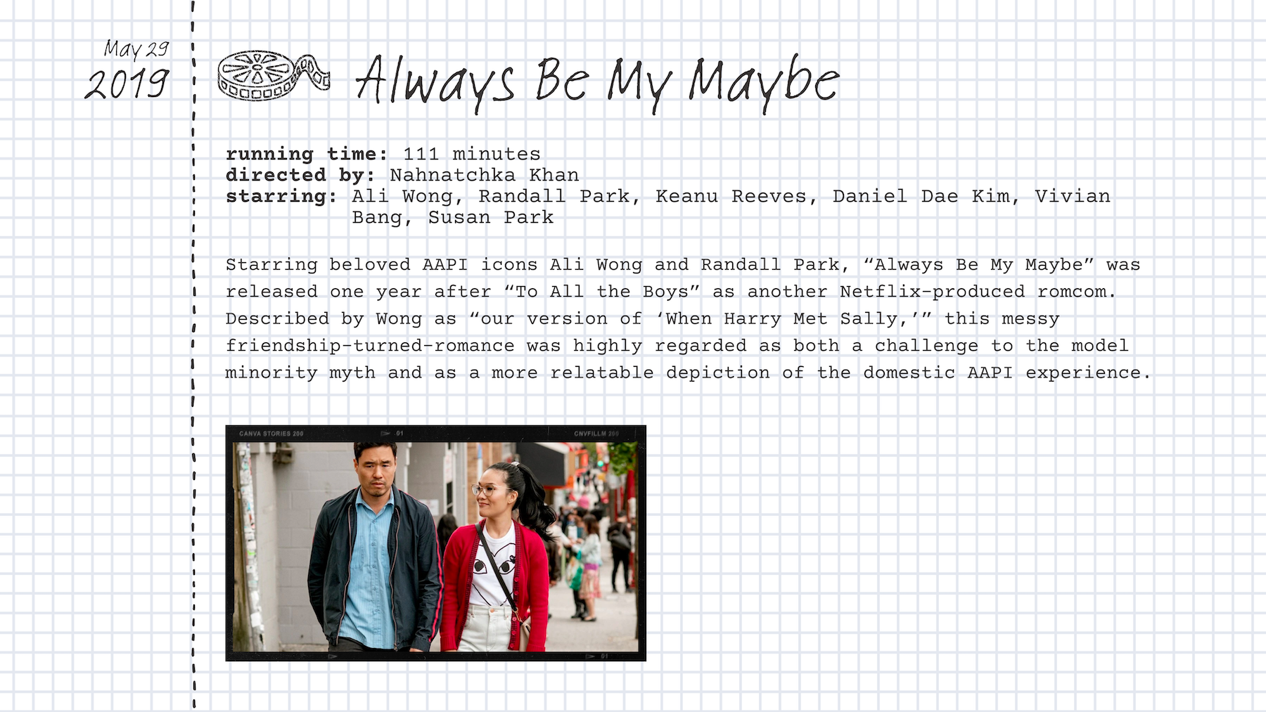Since then, there’s been a dramatic increase in both appetite and space held for AAPI stories. From Netflix’s smash hit “To All the Boys I’ve Loved Before” to Bong Joon-ho’s history-making “Parasite,” AAPI cinema is receiving unprecedented acclaim. After a century of underrepresentation in the industry, the past five years have shown Asian American creatives – possibly for the first time – that their voices matter.