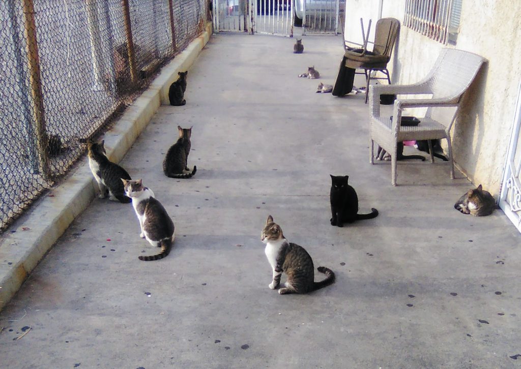 For the past three years, he had been feeding three stray cats out of a little cathouse that he built in his front yard — and one of them had just gotten pregnant. All of the sudden, there was a litter of 20 cats that came to his yard for food, and his landlord was threatening to evict him for having them on his property.