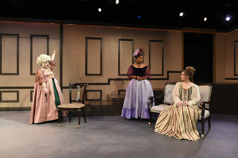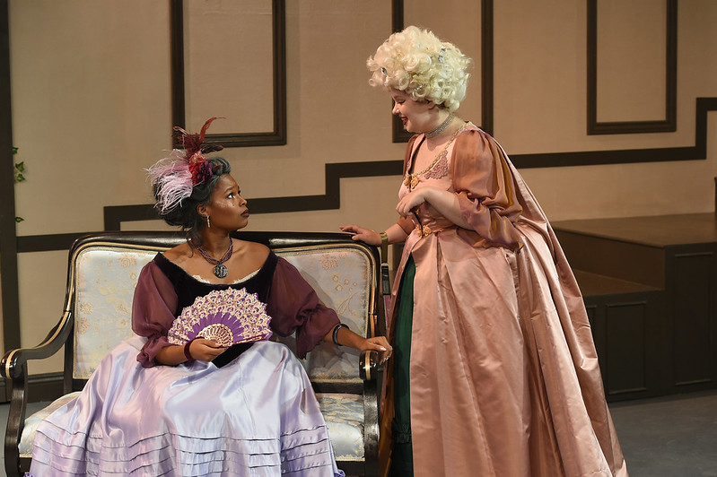 Emma Woodward (pictured right) as Miss Ogle in USC’s production of The Belle’s Stratagem (The Belle’s Stratagem, April 6 – 16, 2023, Scene Dock Theatre. ©2023 Photos by Craig Schwartz for the USC School of Dramatic Arts.)
