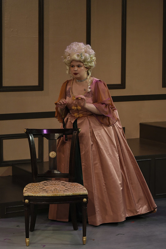 (The Belle’s Stratagem, April 6 – 16, 2023, Scene Dock Theatre. ©2023 Photos by Craig Schwartz for the USC School of Dramatic Arts.)From the opening scene all the way to the bows, Emma sparkled and never slipped out of character. She truly and utterly embodied her role. Only as the crowd leapt to their feet during the curtain call did the glimmer of Emma return through the form of a proud grin as she bowed alongside her felllow cast members.