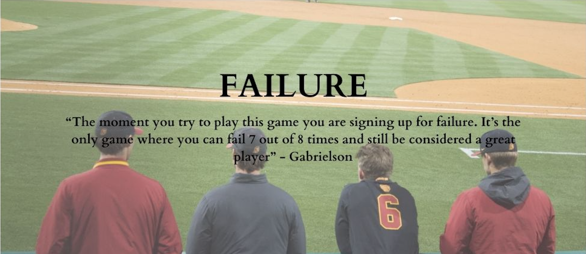 Baseball comes with both large-scale and small-scale failures. The failure to get recruited to a Division I program out of college and the failure to connect with a pitch on any given at bat might not seem to share the same level of weight, but are ultimately interconnected in the ability to build a sense of resilience.