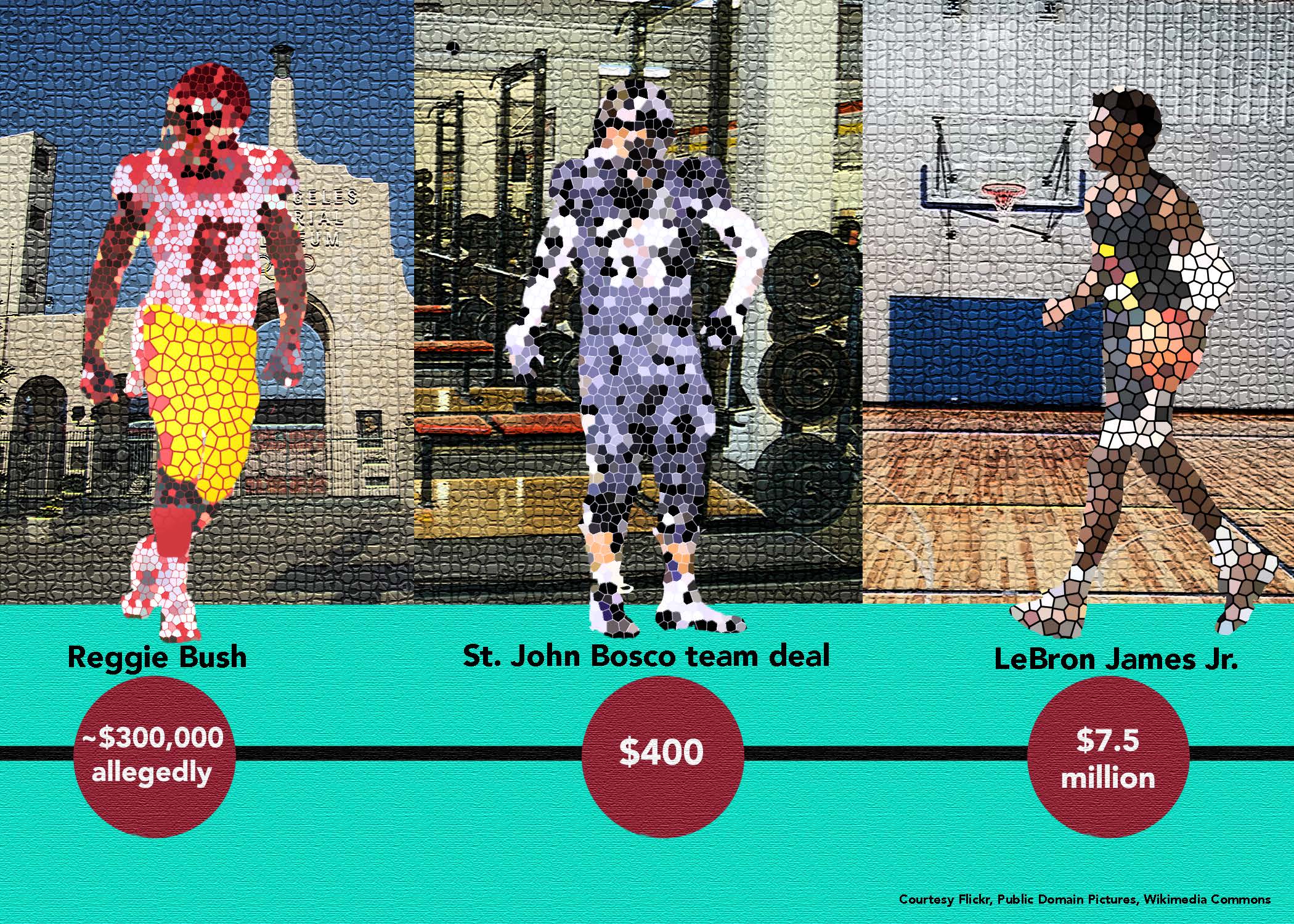 Ranges of high school athletes' financial opportunities vary, from LeBron James Jr.'s acquisition of several million dollars to a St. John Bosco football players' small stipend of $400. Before NIL rules were approved, money-making opportunities for players like Reggie Bush were ripe, but came with consequences.