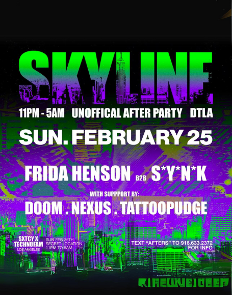 In a city like LA, where people are so focused on their own goals. Where interactions are transactional. Where every night out is an opportunity to climb the social ladder–the underground techno scene offers a temporary escape from the perils of vanity. And when the music stops, the lights turn on, and the sun begins to rise, the night is finally over. As ravers step out of the warehouse and into the rundown neighborhood, the city, surrounded by all that LA-noire, begins to feel a little more like home.