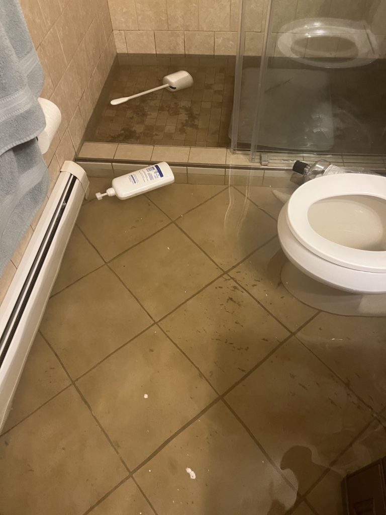 The bathroom in Jiang's house in New Jersey was covered in water. (Courtesy Joyce Jiang)