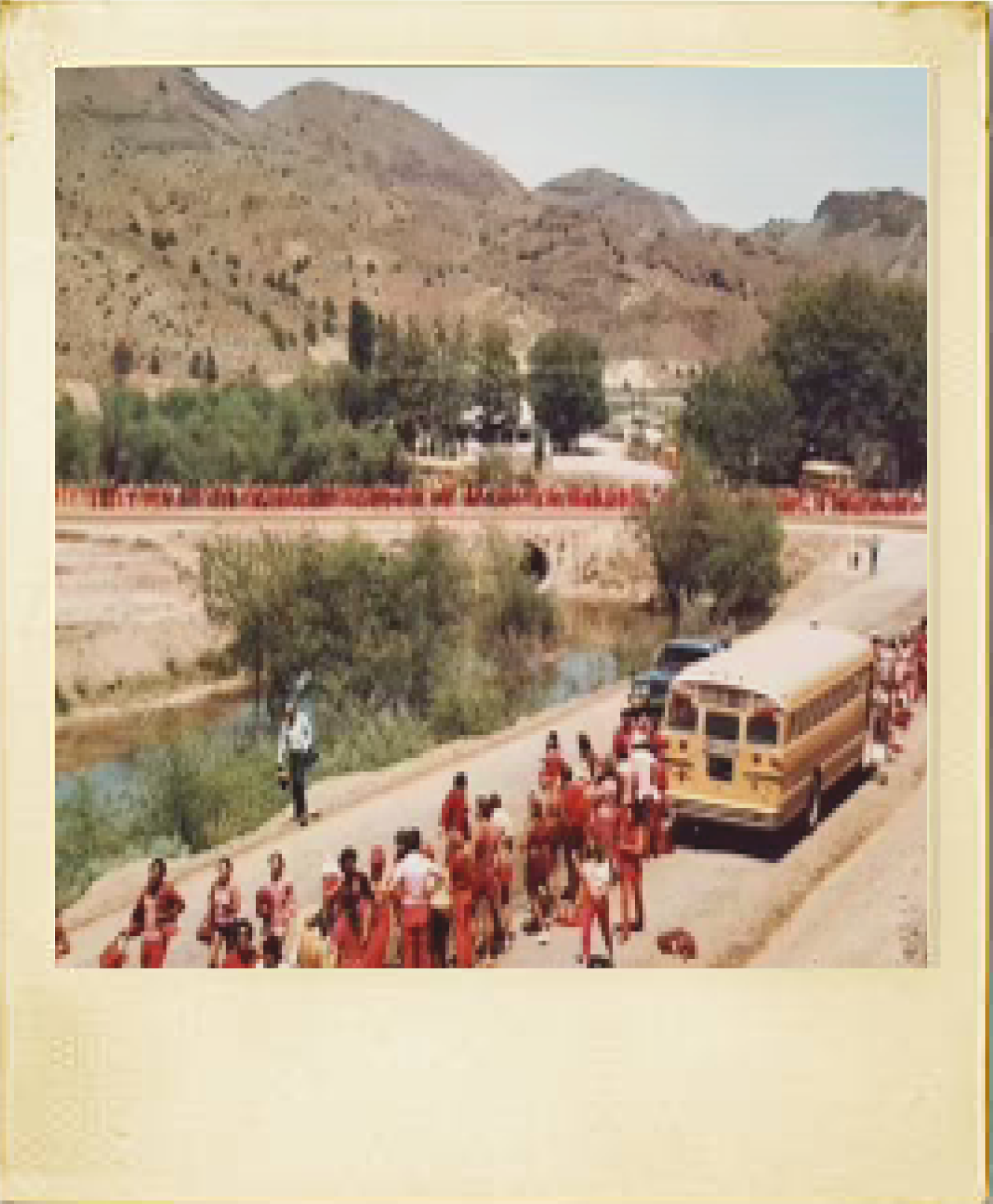 It—perhaps closely aligned to this “American” feeling—was a melting pot, with folks coming from all corners of the world (Palmer herself being from Italy) to listen to and practice the teachings of Osho. Remembering the hostility the ranch drew from locals, Palmer remembers thinking, "Why would they want to destroy such a beautiful thing?"