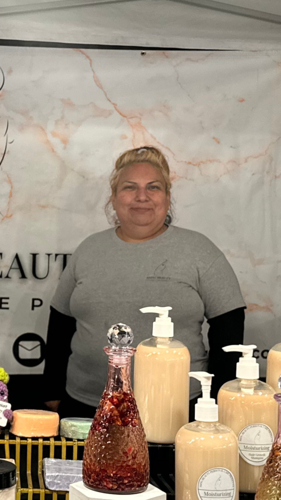 Maribel started Mid G Beauty because she couldn’t find clean skincare for her daughter’s sensitive skin. As a single mom, she taught herself to make everything from soap to scrubs, eventually launching her brand at the urging of her family. “I started off with six items,” she said.