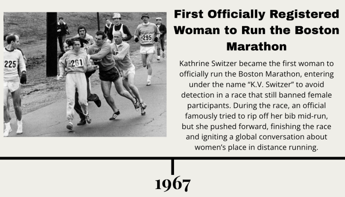 Since its inception, women have dominated the McCourt Foundation Marathon Chase competition, winning 10 of the 14 races held so far. Reflecting the leaps and bounds women have overcome to earn this accreditation in the sport. Although today women’s participation in marathons has become a nearly equal split between men and women, historically that hasn’t always been the case.