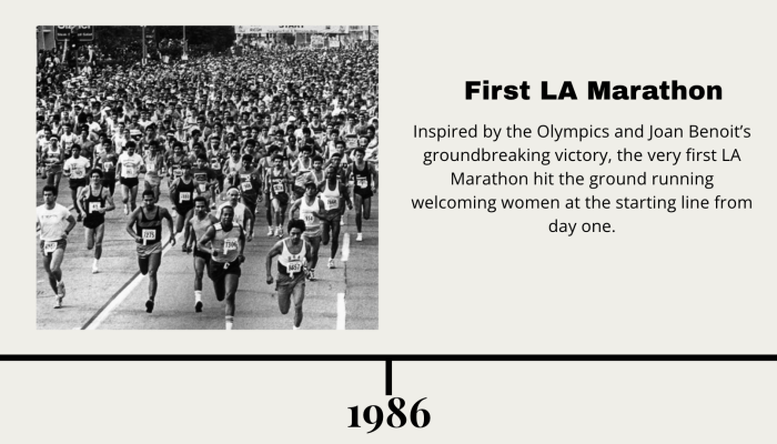 Until 1972, women were officially barred from entering major marathons, including Los Angeles. It was only after years of persistence, protest and quiet defiance by female runners that the Boston Marathon established an official women’s division, allowing other marathons to follow suit, opening the door for future generations.