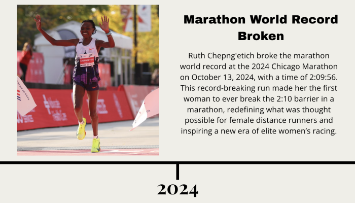 “There was a woman just barely this past year who broke the world record and her time I think opened up a lot of people’s eyes to like wow, how fast can women go. The second the first woman competed in a marathon it opened up a world for women to now compete,” said Berry. “Especially because it is such an individual race it really just takes one person kind of breaking those boundaries for it to be seen that it can be done.”