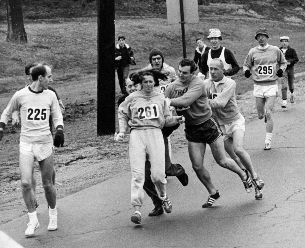 Katherine Switzer becomes the first woman to officially run the Boston Marathon under the registered name K.V. Switzer to avoid gender discrimination.