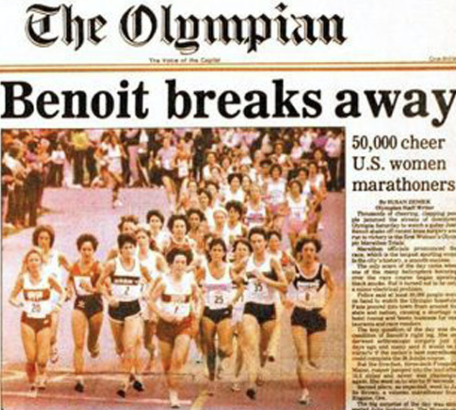 Joan Benoit Samuelson wins the first ever Olympic Gold medal in the Women’s Marathon in Los Angeles.