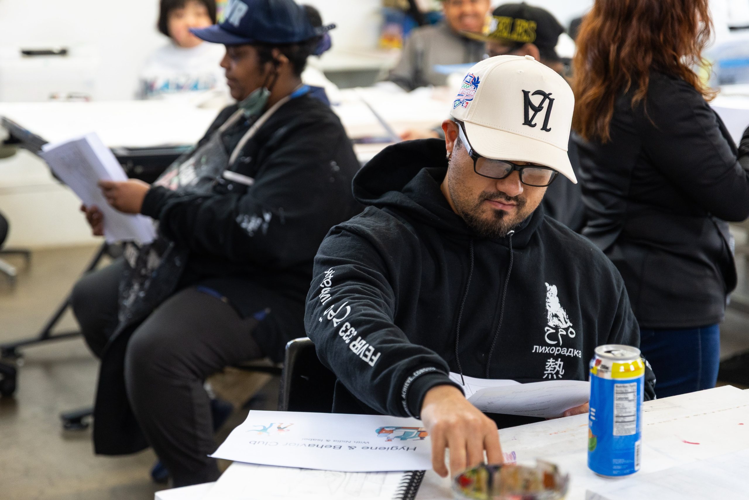 Chris Romero draws while in art class. (Photo by Drake Lee)