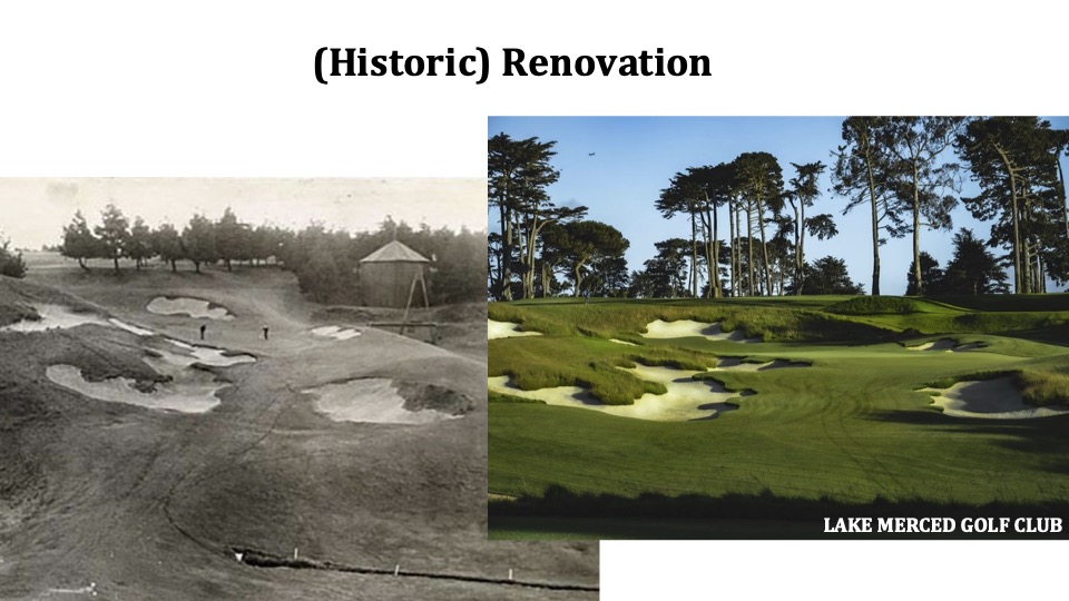 Murphy and his colleagues use the terms “sympathetic restorations” for evolving courses to withstand modern technology while keeping the same identity it had when it was first built.