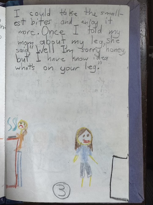 Medical trauma alters the way your brain processes information. When I try to go back in time, to the days I’d spend in the hospital or crying on my bathroom floor, I can’t. It’s a black hole. I scribbled over the events to act as a Band-Aid. That Band-Aid is the reason that I have no concrete memories from before age eight — my memory activated right when I was diagnosed, and I blacked out. This project was my version of ripping off the Band-Aid through live exposures and finally understanding myself, despite my medical trauma.