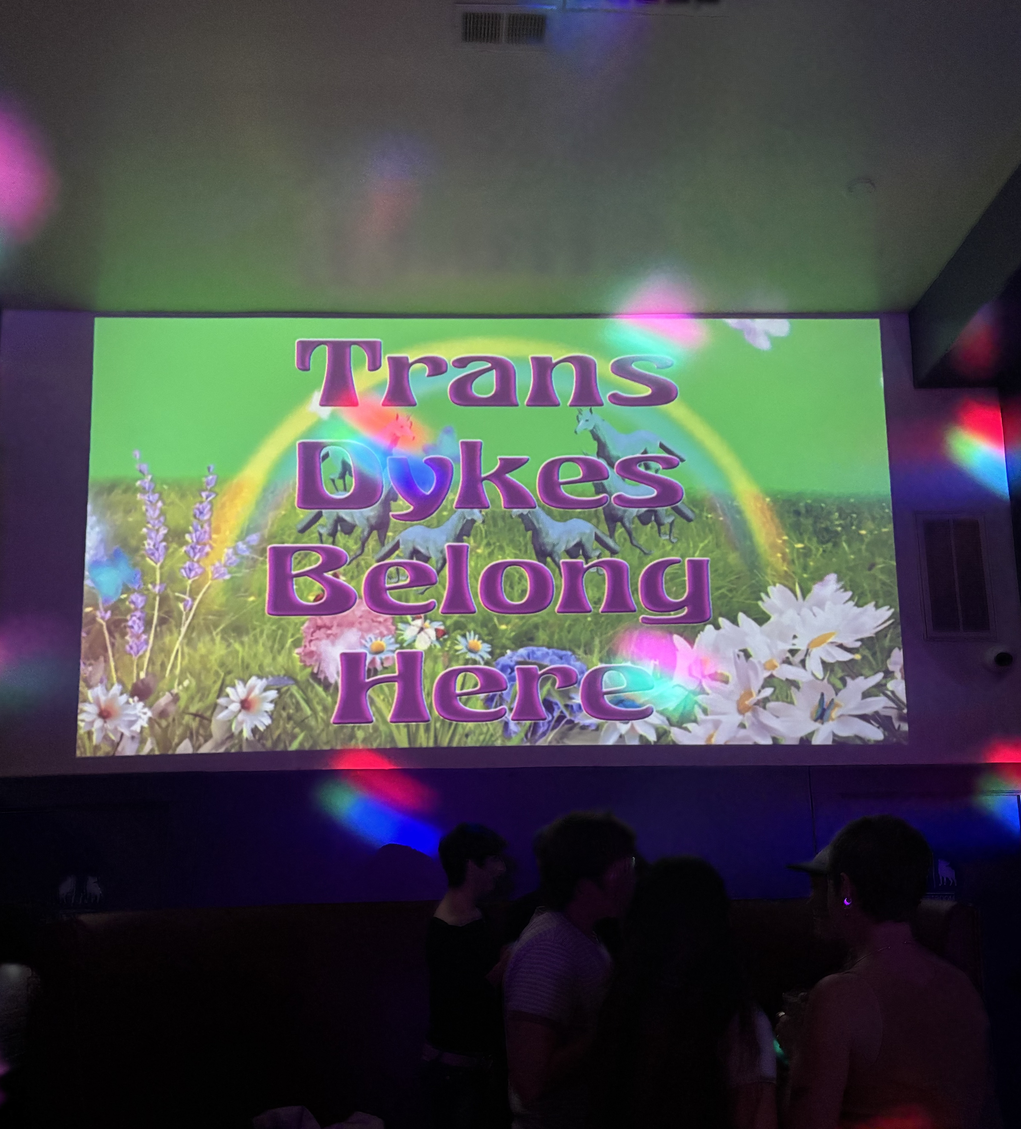 On a packed Friday night at Mother, a DJ blasts Bad Bunny. A green meadow with running hoses takes over the screen on the bar’s back wall, proclaiming “Trans Dykes Belong Here.” While the crowd, of course, has lesbians, people of all genders and sexualities mingle on the couches and crowd the bar.