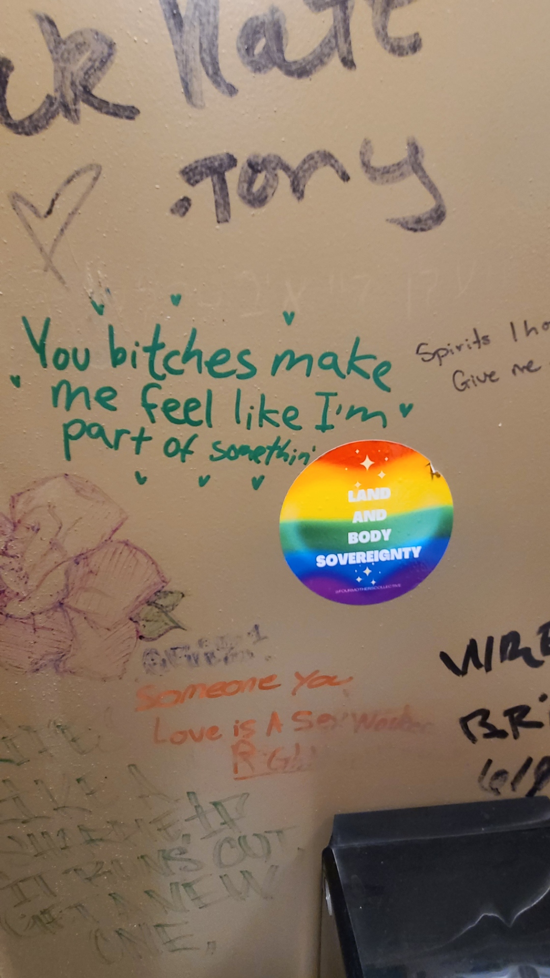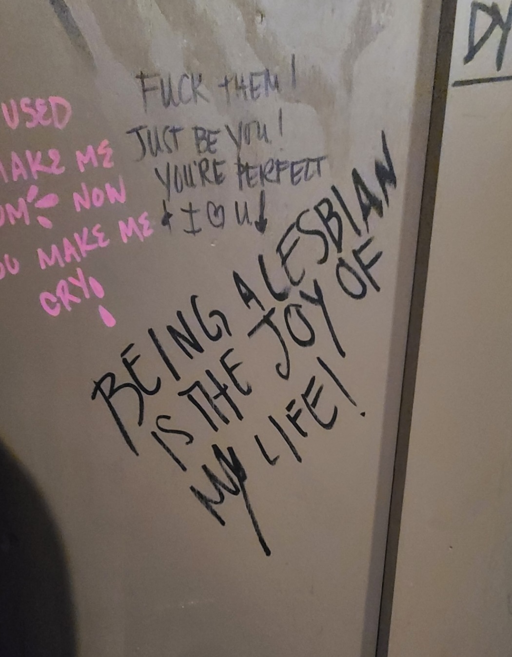 A collection of bathroom stall graffiti inside Yellow Brick Road.