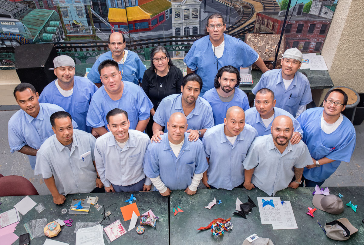 Students at a WJA origami class at San Quentin. (photo by Peter Merts)