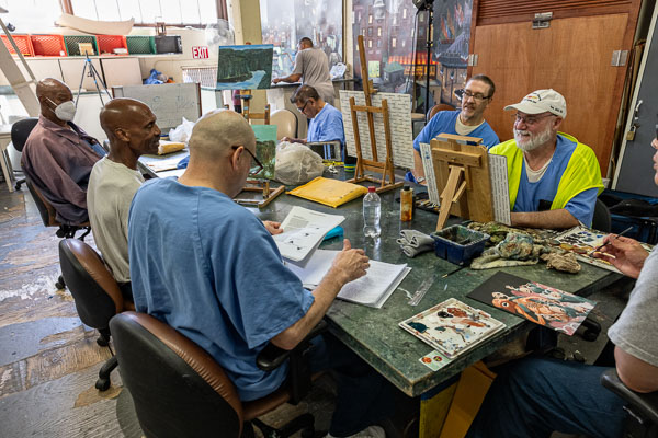 Students participate in a William James Association art class at San Quentin. (photo by Peter Merts)