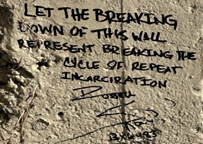 A note left by an incarcerated person on the south wall of San Quentin before it was demolished to make way for Newsom's building complex. (photo courtesy of CDCR)
