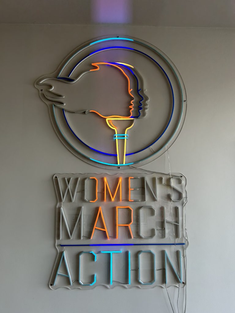 Neon sign displayed at the Women’s March Foundation’s Boyle Heights office (Sarah Arencibia/Annenberg Media).