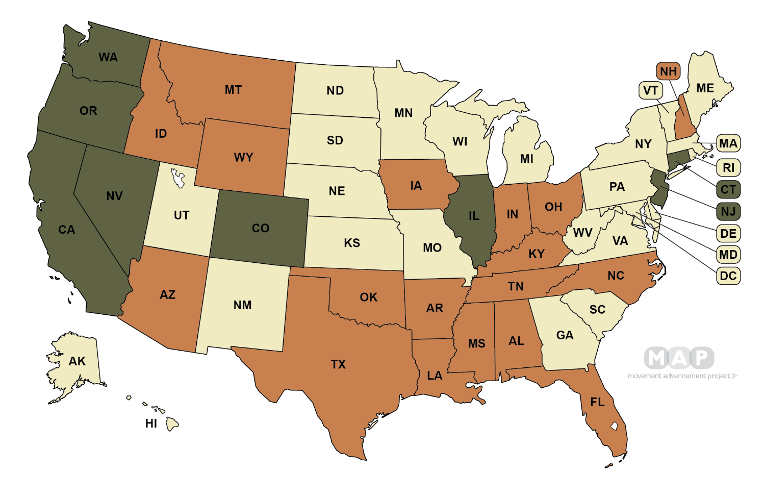 What’s happened in California’s suburban, more conservative Inland Empire is symptomatic of a larger trend across the country: a movement, even in blue states, to stigmatize and restrict LGBTQ people, especially transgender people and students. Nineteen states have passed laws that mandate outing transgender youth to their parents or create a “hostile school climate,” according to Movement Advancement Project, a nonprofit advocacy group that tracks LGBTQ equality. Less than two-thirds of Americans support protecting trans people from discrimination.