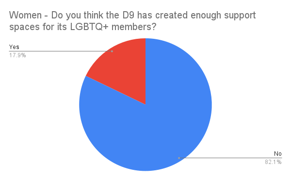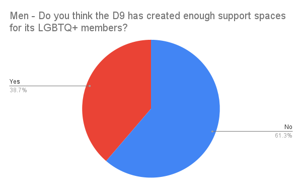 While all of the people I spoke with for this project did tell me about negative experiences that they have had where they have been isolated, not acknowledged, harassed or blatantly discriminated against by other members of their organizations I chose not to include them. Valuing queer voices should not rely on hearing about their pain. With the visibility that comes with this piece, I aim to bring awareness to how LGBT members of the D9 are treated and the steps that they would like to take to have a collective future that they say is the right side of history.