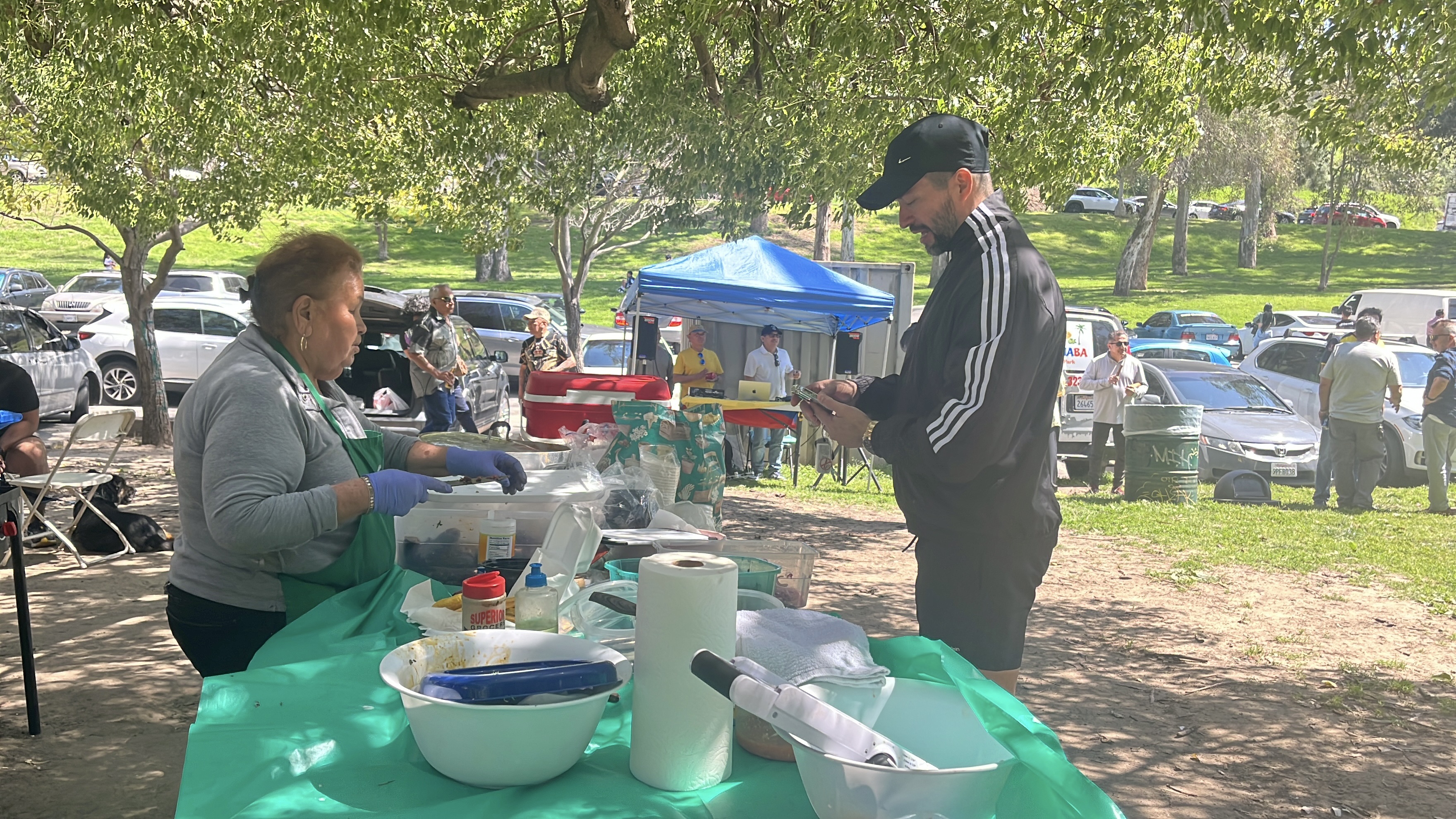 Luzuriaga selling food to customers at Elysian Park (Tony Fajardo / Annenberg Media)