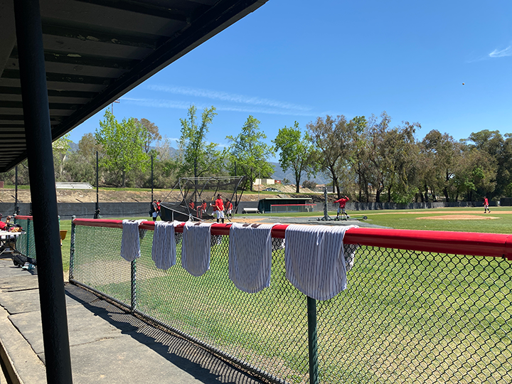 A photo from the Chaffey College dugout before a game. (Photo by Thomas Johnson)