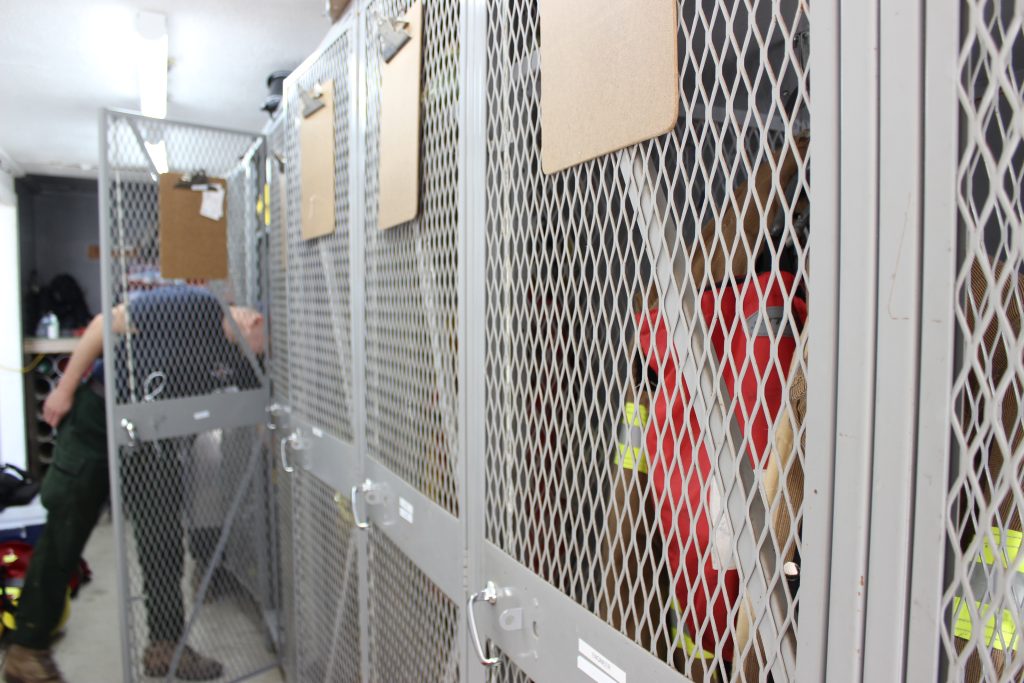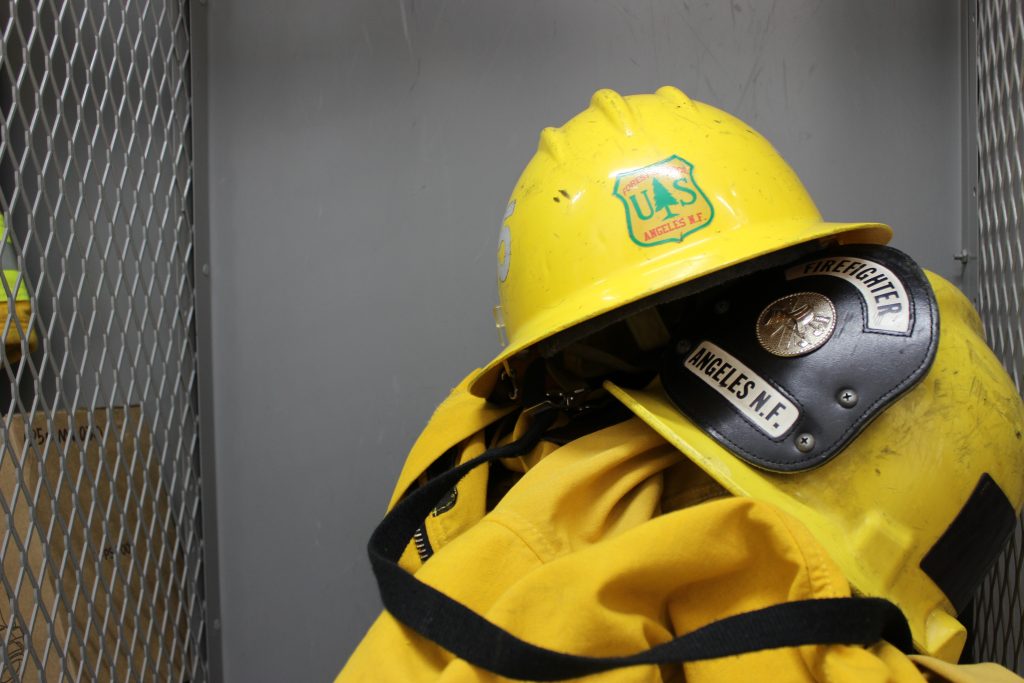 USFS Firefighter gear piled inside of a locker. (Annenberg Media/Jane Walgren)
