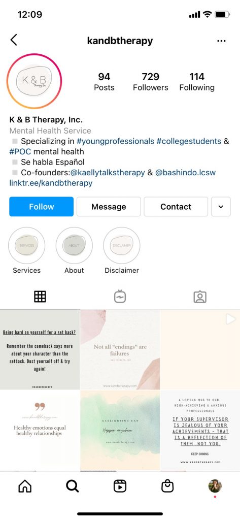 Shindo runs his own personal account, @bashindo.lcsw, as well as the representative Instagram of the group practice that he and his partner own, @kandbtherapy. These accounts are run across multiple platforms, with the largest followings on Instagram first, and then TikTok with a slightly smaller follower count, being that it’s one of the newest social platforms and has only gained immense popularity since the start of the pandemic. He operates a Facebook page as well. He began using the handle @bashindo.lcsw in the Fall of 2017, when he noticed how social media can be powered for good and stimulate healthy conversation around mental health. He has garnered about 2k followers since he began developing his social media presence.