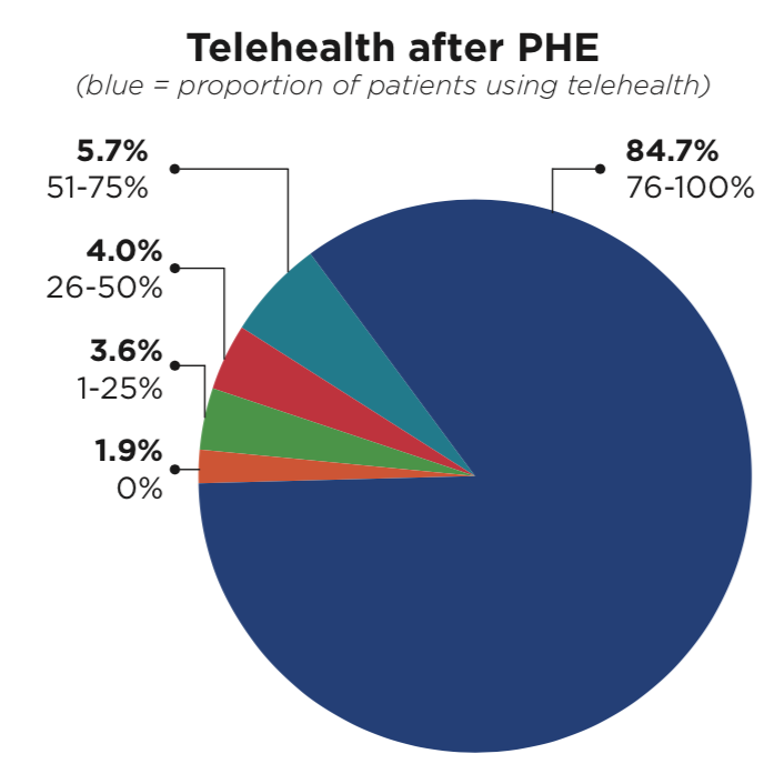 Results show that before COVID-19, 63.6% of the psychiatrists responded seeing zero percent of their patients via telehealth and only 2.1% used telehealth 76-100% of the time. Just a few months later once the pandemic hit, the number of psychiatrists participating in teletherapy the majority of the time jumped to 84.7%, leaving a mere 1.9% of respondents still not attending online sessions at all.