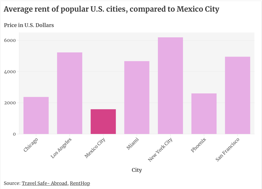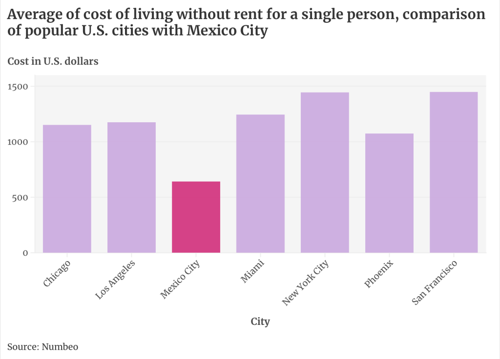 The combination of the rising cost of living and the ability to work abroad makes Mexico City an attractive destination, at least for a few years while one saves money.
