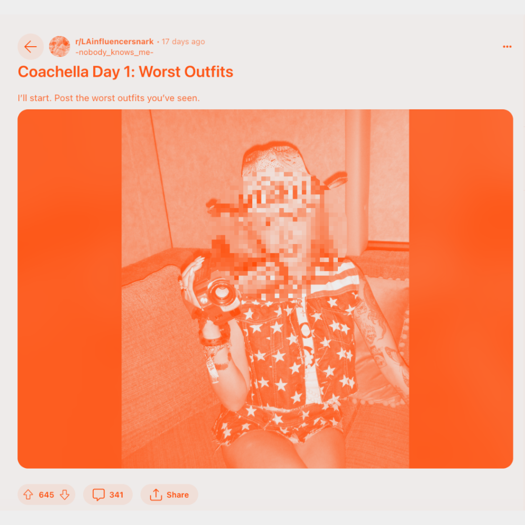 When you open the subreddit r/r/ r/ is used on Reddit to indicate the title of a subredditLAinfluencersnark, you cannot predict what will be on the front page. There might be a debate speculating about the status of an 18-year-old’s plastic surgery, a thread of this year’s worst Coachella outfits, an autopsy of the career of a creator who has entered their “flop era,” or more serious topics like scamming, racism allegations and exploitation. It is all part of the influencer snark landscape. The community’s robust and sometimes ruthless engagement has propelled the subreddit to the top 2% of all Reddit communities.